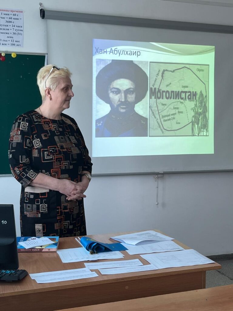 12.02.2025 г учителем истории Бычковской Т.Г . был проведён открытый урок в 6А классе по истории Казахстана на тему: Могулистан. Ханство Абулхаир хана